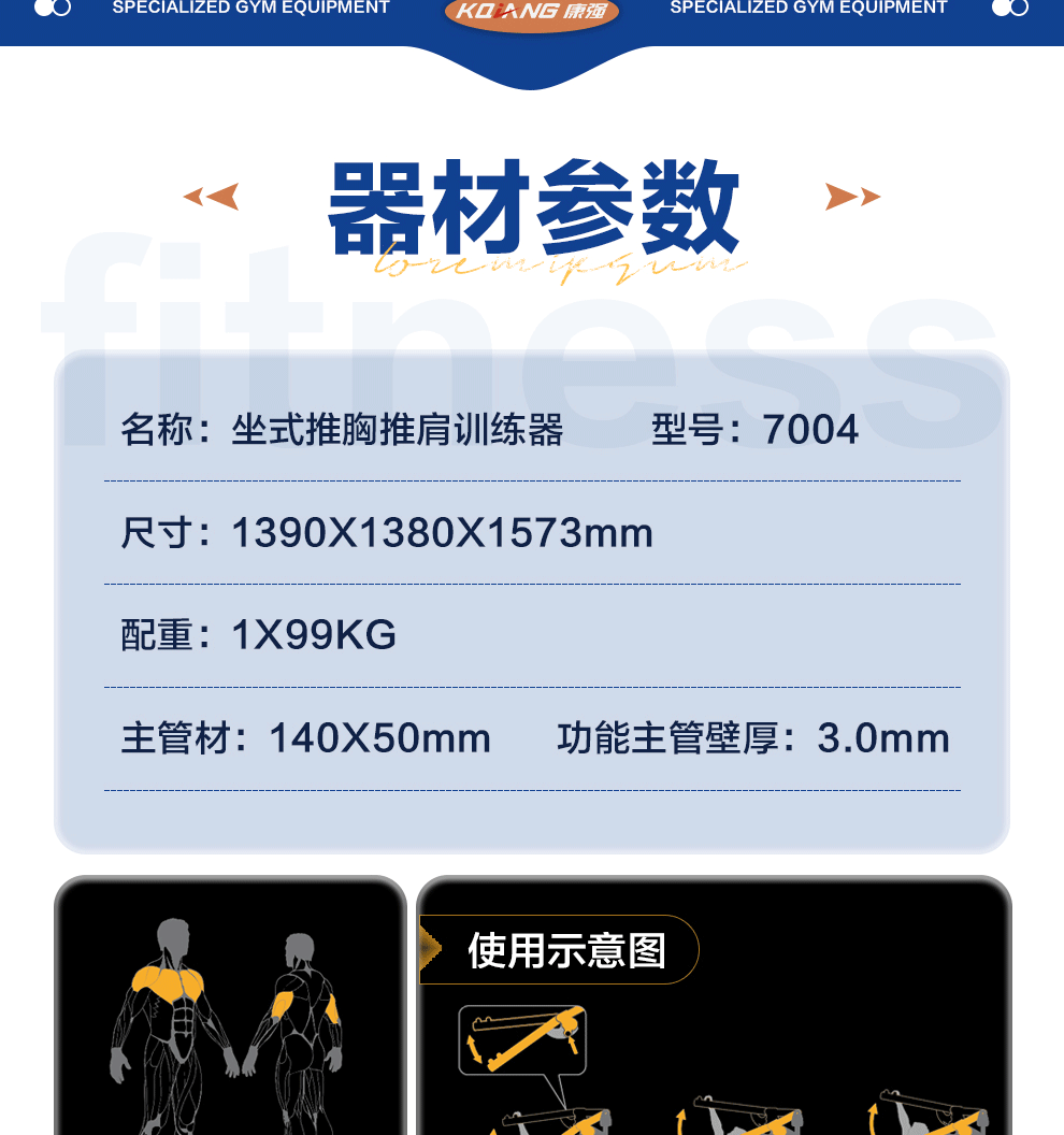 | 型号 | 坐式推胸推肩训练器7004 | ||