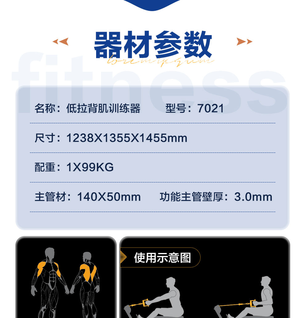 | 型号 | 低拉背肌训练器7021 | ||