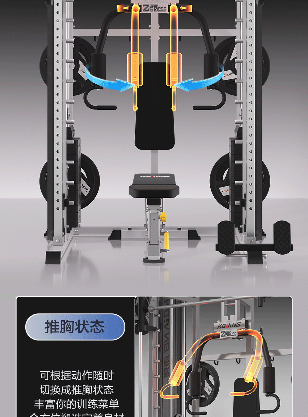 leyu.乐鱼Z50Pro史密斯机综合训练器多功能力量器械家用健身器材深蹲架 Z50Pro推胸夹胸-旗舰版