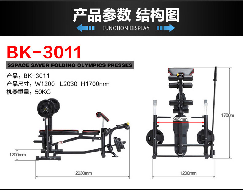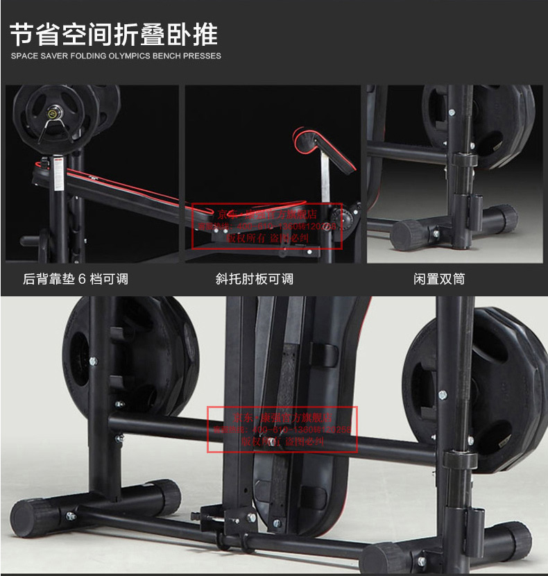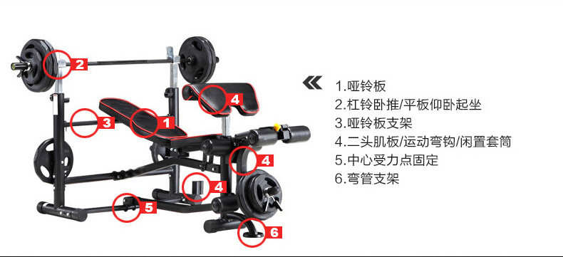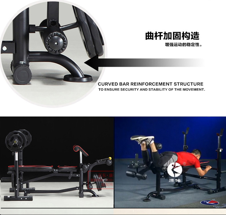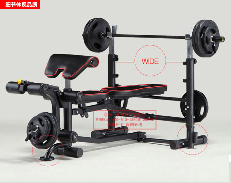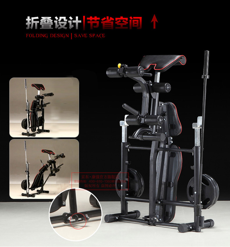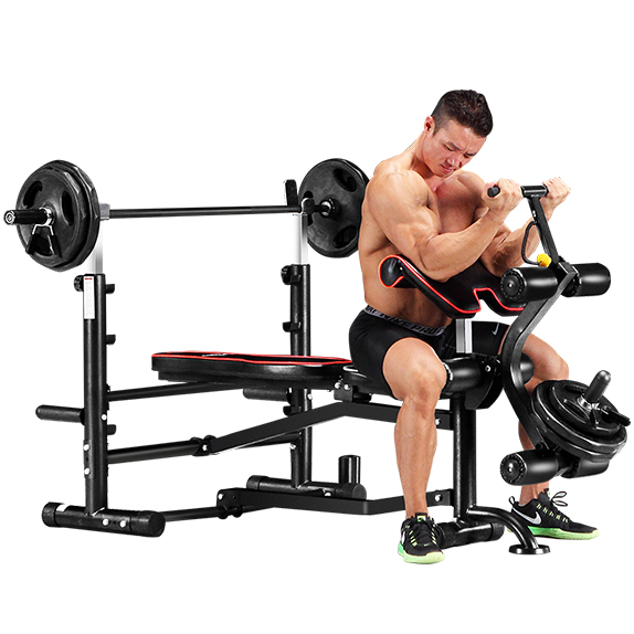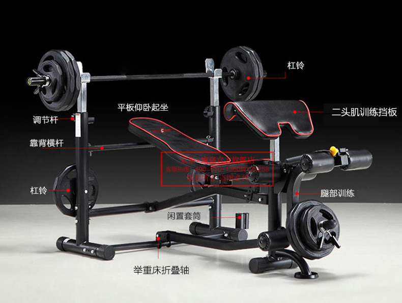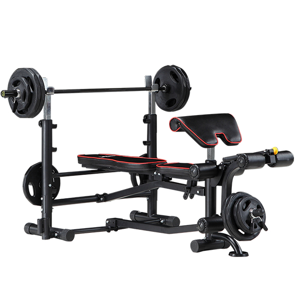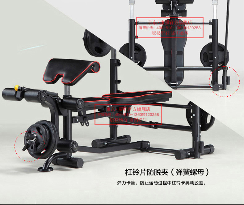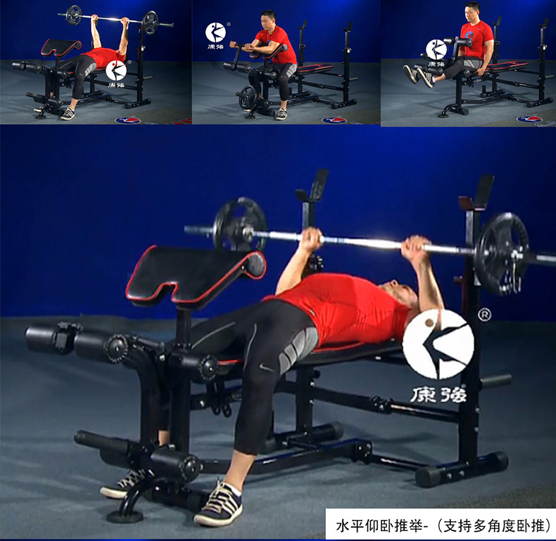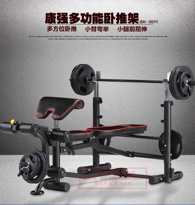 leyu.乐鱼 BK3011多功能卧推架举重床综合训练器健身器材 BK3011+60KG杠铃片+1.8米杆